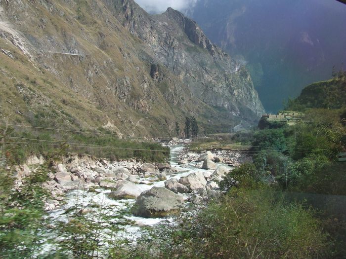Blick aus dem Zugfenster: wieder eine Inka-Ruinenstadt - leider nur über den Inkatrail erreichbar