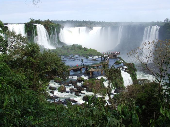 Blick auf das „Teufelsschlund“ genannte Wasserfallsystem und den Panoramasteg auf br. Seite